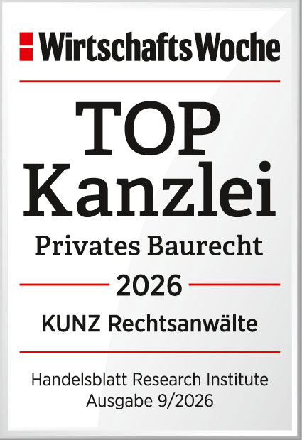 Experience and expertise in real estate law, construction and architectural law, project and claims management, as well as in the conduct of negotiations and litigation are the secure foundation for the success of our clients. In the WirtschaftsWoche ranking, Kunz was awarded the title "TOP Law Firm Construction Law 2020" in the legal field of "Construction Law". Dr. Dr. Theis was awarded as "TOP LAWYER Construction Law 2020".